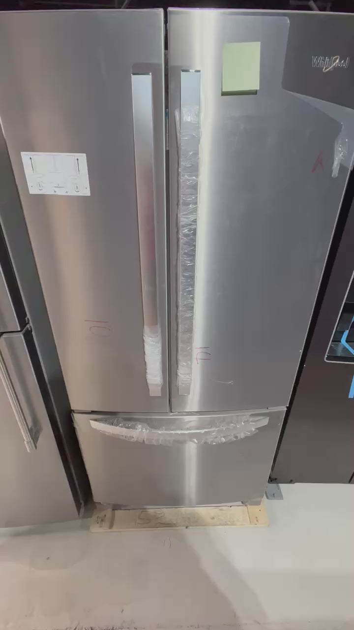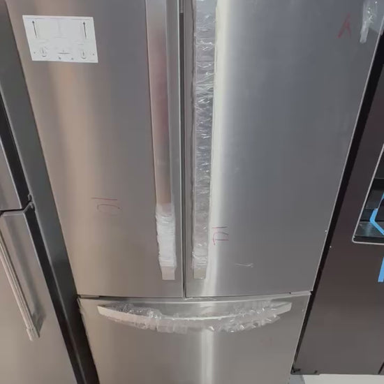 This 22 cu. ft. French-door refrigerator delivers a sleek, space-saving design without compromising storage. Its fingerprint-resistant stainless finish, flexible shelving, and bright LED lighting make it a practical, modern choice for any kitchen.